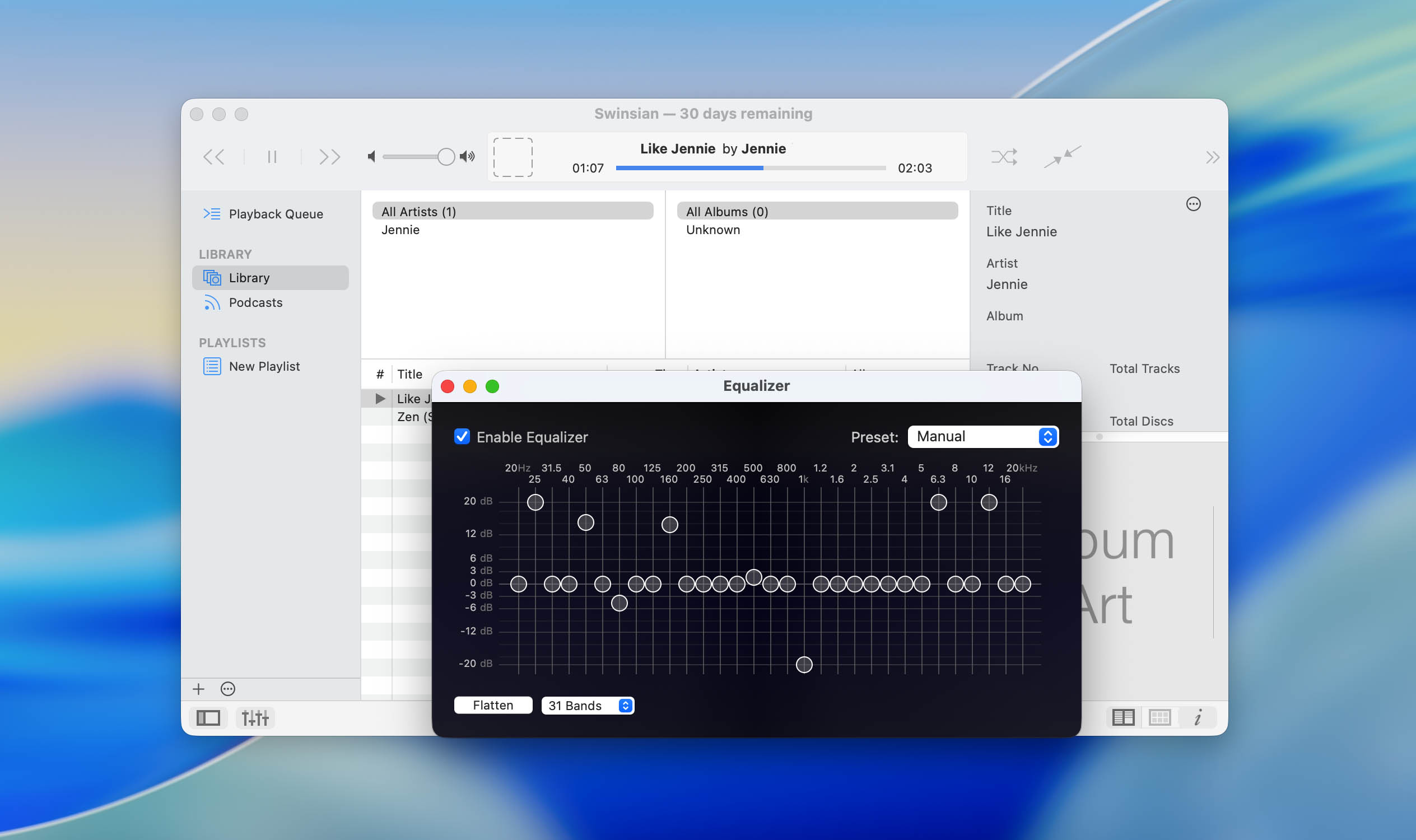 The interface is highly customizable. You can switch between a column browser (similar to classic iTunes), a grid of album covers, or a simple list view. Swinsian also includes batch tag editing and a built-in duplicate finder that helps clean up large libraries. Other useful touches include global hotkeys, a mini player, AirPlay support, Smart Playlists, fast search, and real-time metadata updates. But it is a paid app with a fully-featured 30-day trial. During this period, all functions are unlocked, so you can test the entire workflow before deciding whether to purchase a license.